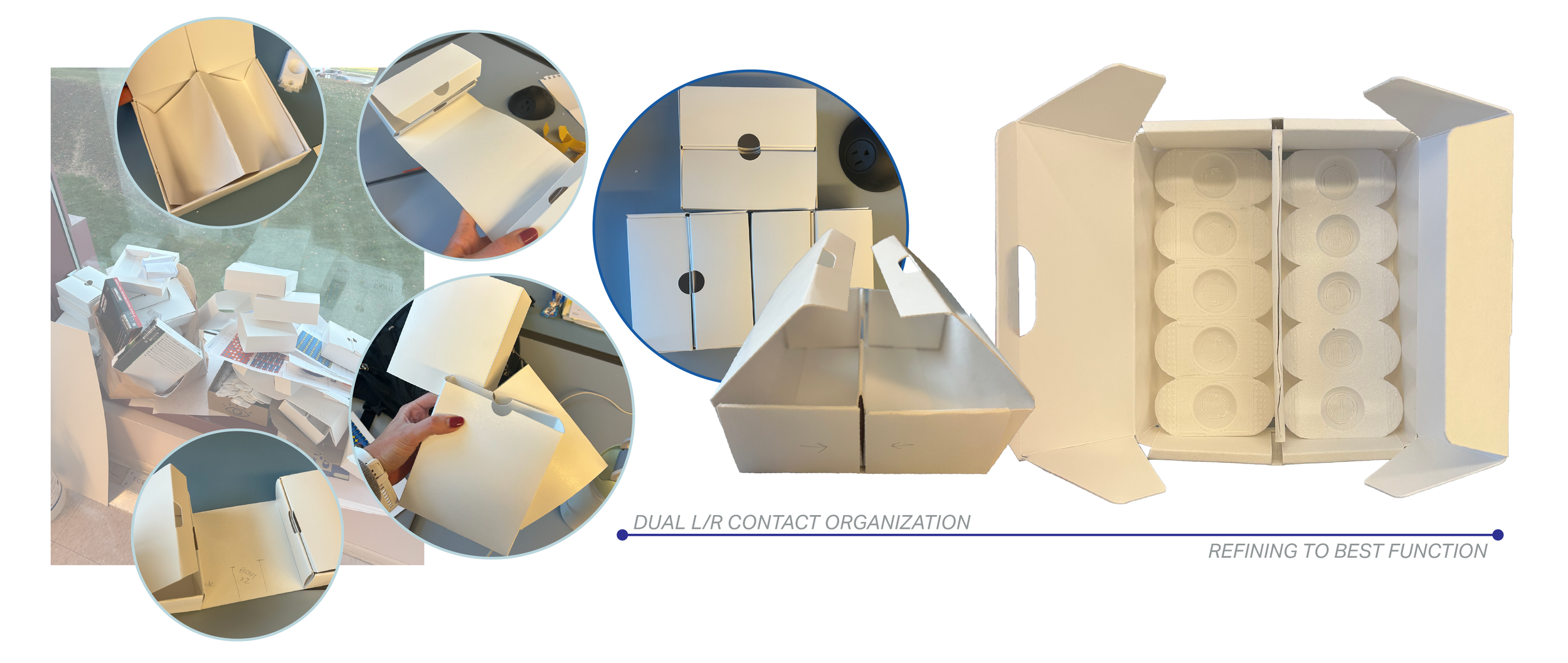 Refining the original secondary package concepts to reflect the final primary blister pack form, focusing on L/R organization as our primary JTBD. .